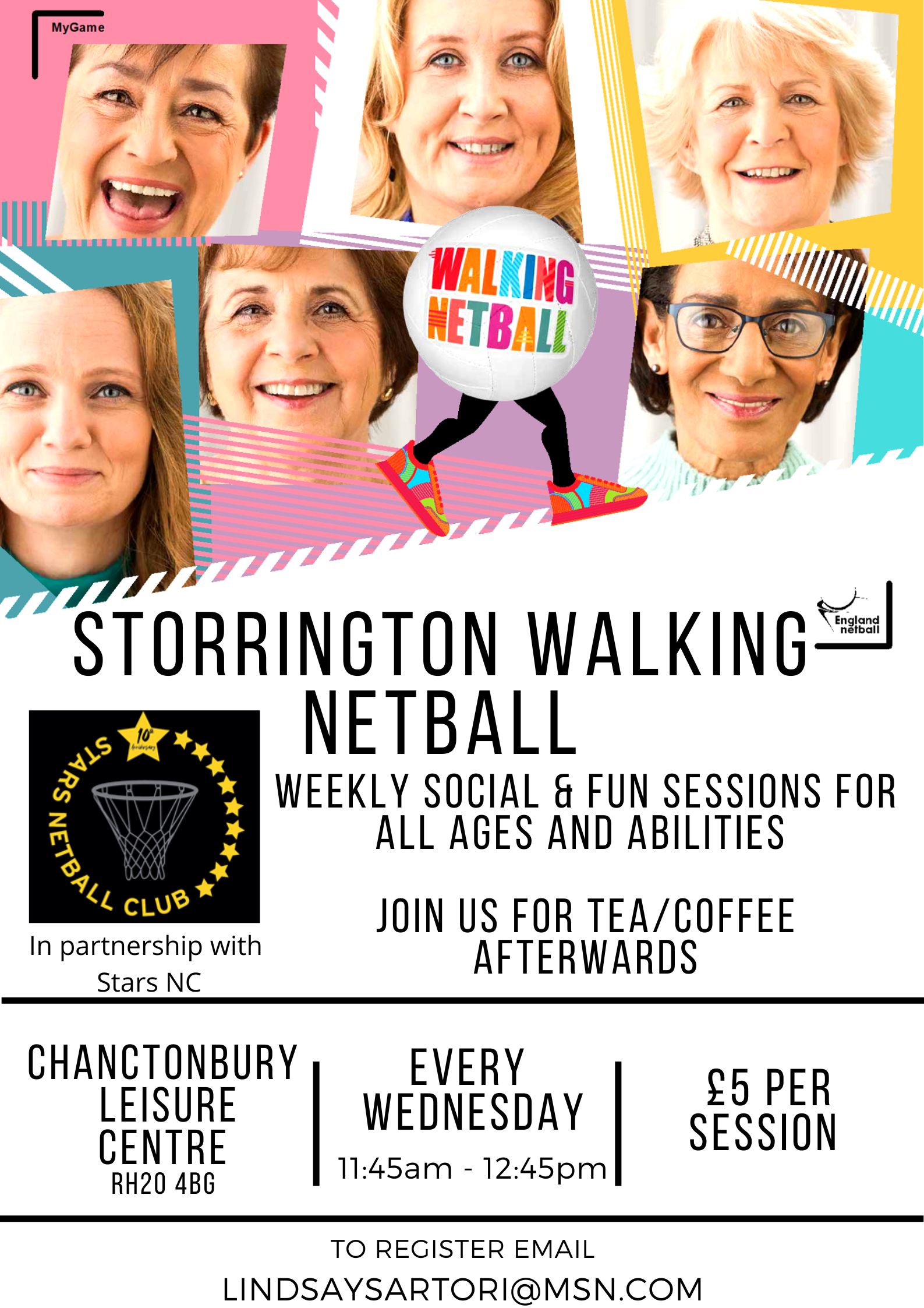 Storrington Walking Netball, a fun, weekly social session for all ages and abilities is available in partnership with Stars Netball Club Chanctonbury Leisure Centre every Wednesday from 11.45 - 12.45pm priced at £5 per session. To register for the class…